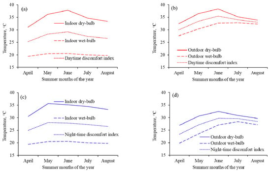 3.2. Daily and Hourly Calculated Discomfort Indices