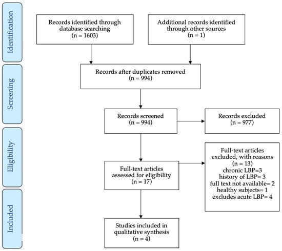 APA StyleReyes-Ferrada, W., Chirosa-Rios, L., Rodriguez-Perea, A., Jerez-Mayorga, D., & Chirosa-Rios, I. (2021). Isokinetic Trunk Strength in Acute Low Back Pain Patients Compared to Healthy Subjects: A Systematic Review. International Journal of Environmental Research and Public Health, 18(5), 2576. https://doi.org/10.3390/ijerph18052576