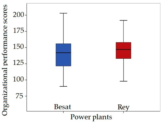 The organizational performance data from the Hersey and Goldsmith Standard Questionnaire indicated that the mean organizational performance was 140.0 ± 23.0 at the Besat plant and 147.7 ± 24.8 at the Rey plant, as shown in Figure 3.
