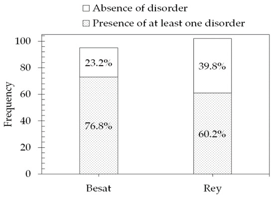 The General Health Questionnaire result indicated that 76.8% and 60.2% of employees at the Besat and Rey plants, respectively, reported the presence of at least one disorder (Figure 4).