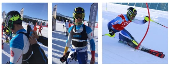 Data acquisition in the different ski disciplines (super-giant slalom, giant slalom and slalom) was carried out using a wireless inertial measurement device (WIMUTM PRO, RealTrack Systems, Almería, Spain). Each skier was equipped with a customized vest with a pocket in the inter-scapular area where the GNSS device was inserted (