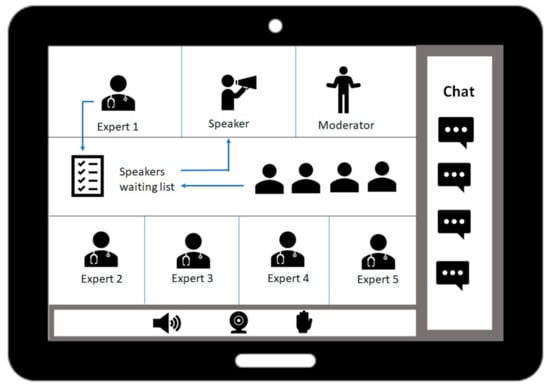 - Muehlensiepen, F.; Mucke, J.; Krusche, M.; Kurkowski, S.; Bendzuck, G.; Koetter, I.; Lemarié, V.; Grahammer, M.; Heinze, M.; Schulze-Koops, H.; et al. The virtual fishbowl: Bringing back dynamic debates to medical conferences. Ann. Rheum. Dis. 2020. [Google Scholar] [CrossRef]
