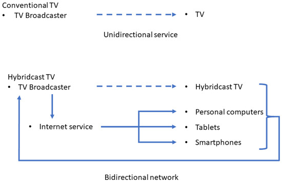 - Hamada, H. Overview of the Hybridcast system. Broadcast Technol. 2013, 51, 2–8. Available online: https://www.nhk.or.jp/strl/publica/bt/51/pdf/bt51.pdf (accessed on 27 December 2020).