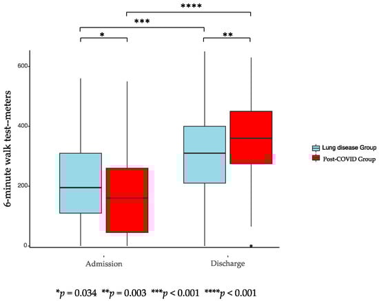 6-min walk test of post-COVID-19 Group and lung diseases group.