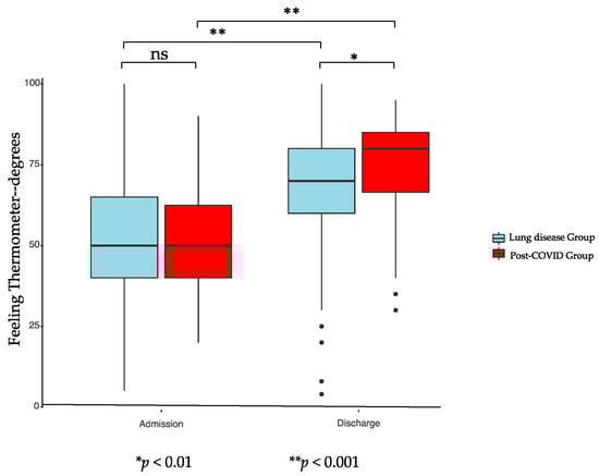 Feeling thermometer of post-COVID-19 group and lung diseases group. ns: no significative.
