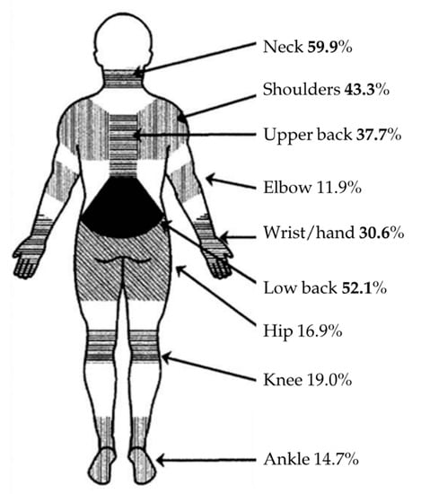 Painful disorders and algic symptoms concerning the musculoskeletal apparatus deriving from movements in work activities are indicated as work-related musculoskeletal disorders (WMSD). These musculoskeletal issues are related to continual repetition, often in a forceful manner and with a lack of recovery time [].