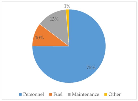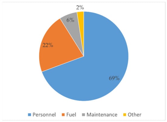Distribution of expenses into the four headings is presented in Figure 3. Personnel expenses is the highest (69%), followed by fuel expenses (22%), which is similar to findings to FS E&T businesses in Thailand and Vietnam [].