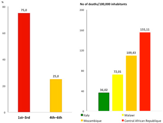 Stroke is a leading cause of death in sub-Saharan Africa. Left panel: stroke ranks as first to third leading cause of death in 75% of sub-Saharan countries (ref. [9]). Right panel: mortality for stroke in Italy compared to sub-Saharan Africa countries.