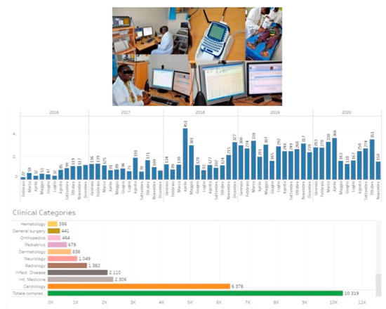 A triage code is assigned to each request. Real time discussion of cases is also possible [60,65]. To receive advice from cardiologists and neurologists, health personnel are trained to perform and send through the telemedicine system electrocardiograms in all patients with cardiovascular risk factors [60,65]. In more than two-thirds of the requests, opinions from more than one specialist are requested and multi-specialist advice on the patient is offered [60]. Each specialty has a coordinator to facilitate the question-and-answer process, and a moderator (a doctor in Europe) leads the web-discussion. In addition to shared work on the ground, phone calls, whatsapps, and emails reinforce communication and relationship between local health care givers and specialists in Europe [60].