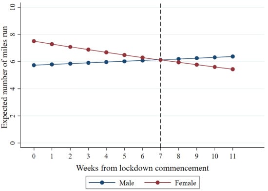 However, our finding that females showed a decrease in running behaviour following the commencement of lockdown is perhaps more surprising. Some previous studies found that PA among female students actually increased between pre- and during lockdown [], particularly engaging in certain forms of exercise such as high-intensity interval training (known as HIIT) []. Compared to males, females more frequently reported that they had more time to exercise during confinement, that they had found different resources for exercising, and that exercise helped them against stress []. In light of this, it is plausible that our findings showing a decrease in running activity from during to post-lockdown might reflect female students having increased their exercise behaviour temporarily at the start of lockdown, but not maintaining this long term. Future studies could conduct qualitative work, and incorporate pre-lockdown PA data, to investigate whether this was indeed a temporary increase in running activity.