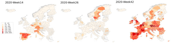 - Kapoor, A.; Ben, X.; Liu, L.; Perozzi, B.; Barnes, M.; Blais, M.; O’Banion, S. Examining COVID-19 Forecasting using Spatio-Temporal Graph Neural Networks. arXiv 2020, arXiv:2007.03113. [Google Scholar]