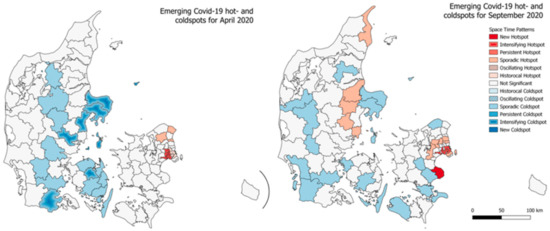- ESRI. How Emerging Hot Spot Analysis Works. 2020. Available online: https://pro.arcgis.com/en/pro-app/latest/tool-reference/space-time-pattern-mining/learnmoreemerging.htm (accessed on 14 December 2020).