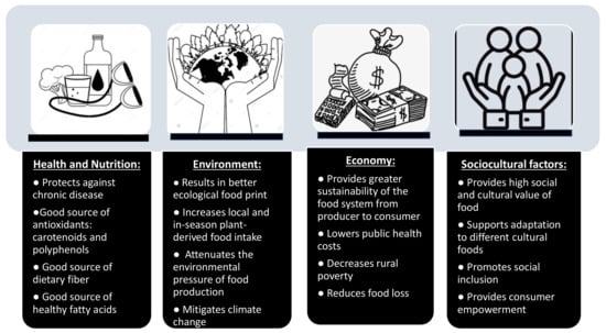 A summary of the salient points of this MDP are presented in Figure 4, which exemplifies the benefits of the Mediterranean diet for (1) nutrition and health, (2) the environment, (3) the economy, and (4) sociocultural factors.