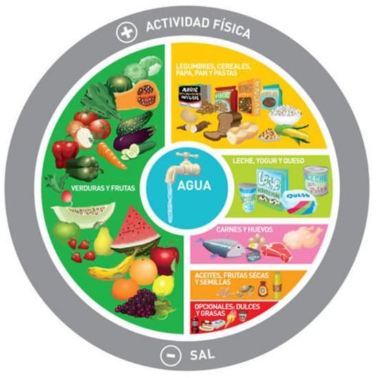 The DGAP are also a planning tool for the sectors of health, education, production, industry, commerce, and all those who work in the food area [17]. The highlighted recommendations include the consumption of safe water, the practice of physical activity, the lower consumption of salt and a higher consumption of fibers, polyunsaturated fatty acids with a decrease in the consumption of saturated fats and sugars [17,18]. However, the Argentinian pyramid does not address sustainability or the environment.