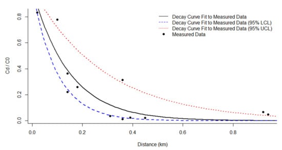 where, d: the distance (km), Cd: the asbestos concentration at distance d (f/cc), C0: the asbestos concentration at distance 0 (f/cc), k: the overall fiber decay constant = 6.834.