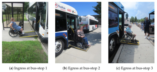 - Frost, K.L.; Bertocci, G.; Smalley, C. Ramp-related incidents involving wheeled mobility device users during transit bus boarding/alighting. Arch. Phys. Med. Rehabil. 2015, 96, 928–933. [Google Scholar] [CrossRef]