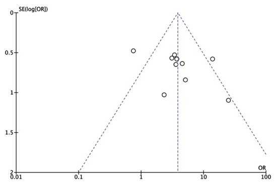 Funnel plot of publication bias. OR: odds ratio. SE: standard error.