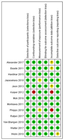 - Park, J.; Lee, Y.; Seo, H.; Jang, B.; Son, H.; Kim, S.; Shin, S.; Hahn, S. Risk of bias assessment tool for non-randomized studies (RoBANS): Development and validation of a new instrument. In Proceedings of the 19th Cochrane Colloquium, Madrid, Spain, 19–22 October 2011; pp. 19–22. [Google Scholar]