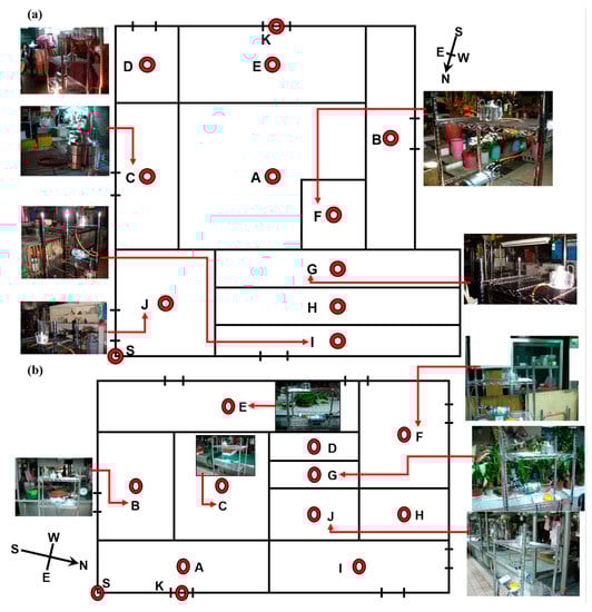 - Reanprayoon, P.; Yoonaiwong, W. Airborne concentrations of bacteria and fungi in Thailand border market. Aerobiologia 2011, 28, 49–60. [Google Scholar] [CrossRef]