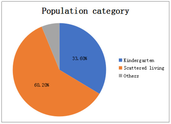 Figure 4. HFMD’s proportion of each population category. - In term of age: As shown in Figure 5, infants and children aged 0–6 years of HFMD infection account for a considerable portion, accounting for about 95% of all infected people.Therefore, the number of children aged 0–6 in each region can be used as an important indicator to predict the prevalence of HFMD.