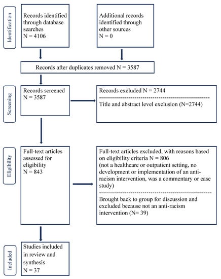 APA StyleHassen, N., Lofters, A., Michael, S., Mall, A., Pinto, A. D., & Rackal, J. (2021). Implementing Anti-Racism Interventions in Healthcare Settings: A Scoping Review. International Journal of Environmental Research and Public Health, 18(6), 2993. https://doi.org/10.3390/ijerph18062993