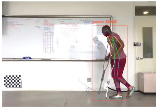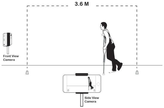 To our knowledge, there has been only one preliminary study assessing stability by measuring the acceleration of the people who walk with crutches [], and that study looked at periodic patterns while using sensors and optical motion capturing of participants. In this paper, our objective is to eliminate expensive setups and simplify the measurements by using video analysis. The goal is to propose a simple, inexpensive, non-contact, remote evaluation of stability in crutch users.
