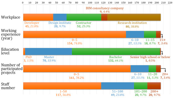 The questionnaires were collected by two means. The first way was distributing the questionnaire in BIM-related professional forums. Nevertheless, the collected responses were very limited, only 47 responses were collected. In order to collect more responses, the questionnaires were then sent to construction professionals via email. The “snowball sampling” strategy was adopted by inviting respondents to hand out the questionnaire to their colleagues. This strategy was adopted because it could improve the efficiency of obtaining a relatively large number of responses [