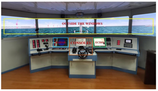 As shown in Figure 4, all situations involving pilotage tasks were selected from the database of qualification examinations, where the subject was Shanghai Yangshan port outbound. The measurement of SA was implemented by the measurement framework of SA level, which consists of three dimensions and ten subdimensions as shown in Figure 3 [49]. Since the non-intrusive and ease of implementation, 3D-SART was one of the most representative methods in the self-rating techniques for measuring the SA level [50]. It was developed from three dimensions including operators’ attentional demands, attentional supply and situational understanding, then ten subdimensions were constructed as the measurement items combining with practical pilotage situation. The results were calculated from equation that SA score = understanding−(demand−supply). Besides, 7-level Likert measurement was adopted in all items. Furthermore, 3D-SART was used to measure the pilot’s SA level before and after the experiment. The score before the experiment was used as a reference to ensure that real levels in the pilotage experiment are obtained, that is, under the premise that the SA score before the experiment was in the normal range, the SA score after the experiment was the actual SA level. Otherwise, the outlier data was deleted.