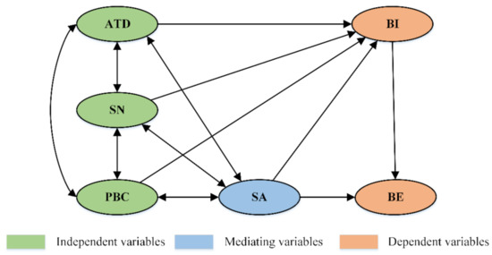 In a word, TPB is a social psychological model that explores the mechanism of rational behavior, including attitude, subjective norms, perceived behavioral control, and behavioral intention variables [32,42]. As a significant predictor of behaviors, behavioral intention had been effectively verified in the field of transportation [43]. However, due to the complexity and the typical empirical properties on the ship pilotage, the unsafe behaviors were the combination of rationality and unconsciousness in the real-word. In this study, the latent variable of SA, as the representation of information processing mechanism in the individual cognitive processes, was introduced to modify the basic TPB model. Subsequently, the structural equation model of pilots’ unsafe behaviors was constructed to identify path dependency from a cognitive correlation perspective.