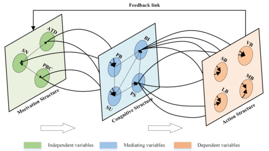 For quantifying the relationship between latent cognitive variables in the extend TPB formwork, SEM was proposed to analyze the interaction between structural variables based on the covariance matrix of variables [40]. This method integrated multiple regression analysis, path analysis, and confirmatory factor analysis, and considered the influence of measurement errors, and was not restricted by the assumptions of path dependency. The core of SEM is to estimate all the parameters of variables simultaneously with the maximum likelihood method, considering the fitting degree of the model as a whole by measuring the difference between the covariance of the theoretical model and the actual covariance [41]. McBride, Carter, and Phillips [32] used the SEM method to explore the intention of unsafe behaviors through TPB in conjunction with psychosocial factors when driving among young drivers.