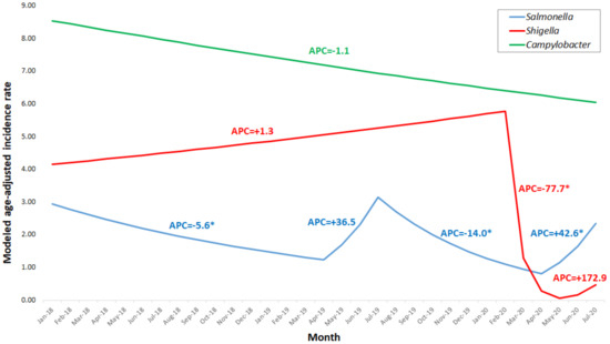 | Salmonellosis | Shigellosis | Campylobacteriosis | |||||