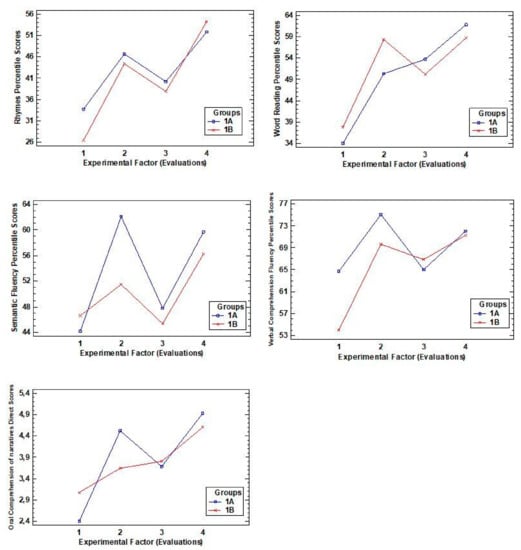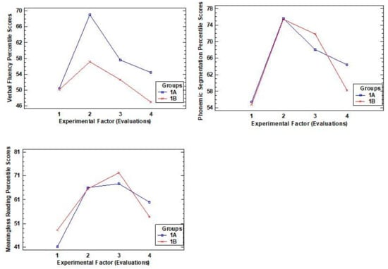 Furthermore, it should be noted that similar behavior was detected in the results of both groups (1A and 1B) over the four instances of evaluation, in light of which we judge that the HLE (A) program had a positive effect on all participants, independent of the specific teachers in charge of teaching the different subjects. That is to say, the instruction that was given affected both groups in the same way, without interfering in the effectiveness of the program. Nevertheless, a decrease in the scores was observed following the vacation period because during this time no type of intervention was carried out, confirming the necessity of systematic training to the process of learning to read, and the importance and the influence of the family within this, as previously indicated by authors such as Díaz and Soto (2019) and Jiménez (2012) [,].