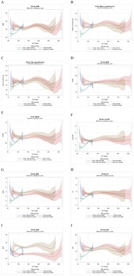 3.2. B-Spline Comparisons for Fasting Glucose with Obesity-Related Indices