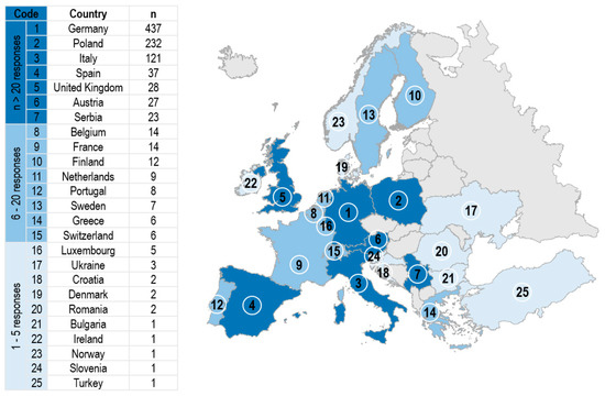 Figure 1 presents 25 participating countries, as well as the number of responses received.