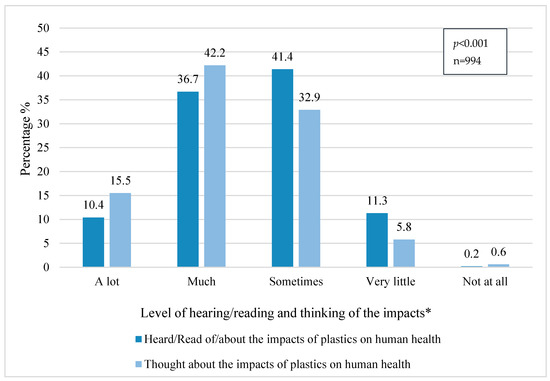 Figure 6. Receiving information and thinking about the impact of plastics on health. * Significant relation (chi2, p < 0.001) between receiving information and thinking about the impact of plastics on health.