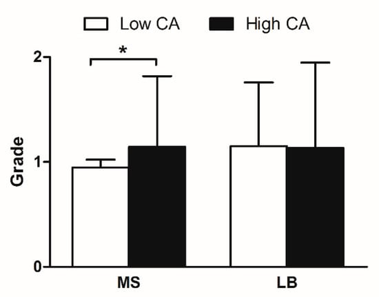 | Individual Casual Parameters | Low CA 1 | High CA 2 | p-Value |