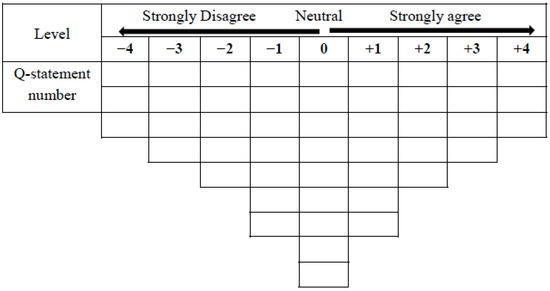 The Q-methodology combines the strengths of both qualitative and quantitative research [19]. In this approach, participants are presented with a set of statements regarding a designated topic and asked to rank these descriptive statements based on the degree to which they consider them relevant or correct. Individual perceptions are then obtained by examining respondents’ sorting of the set of statements.