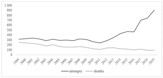 APA StyleOrlewska, K., Orlewski, P., & Klusek, J. (2021). Suicide among Polish Adolescents—A 20 Year Analysis. International Journal of Environmental Research and Public Health, 18(6), 3190. https://doi.org/10.3390/ijerph18063190