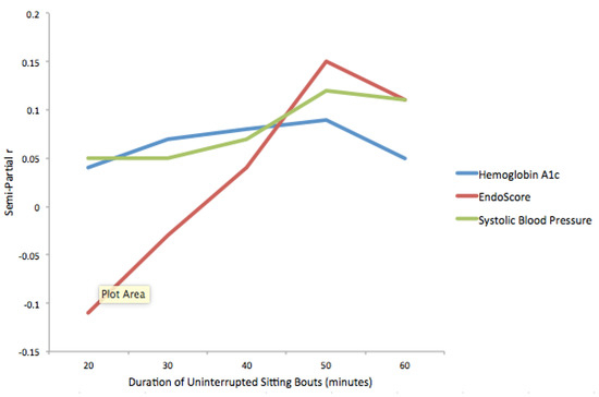 Semi-partial correlation coefficients for relationships between physiological markers and uninterrupted sitting bouts.