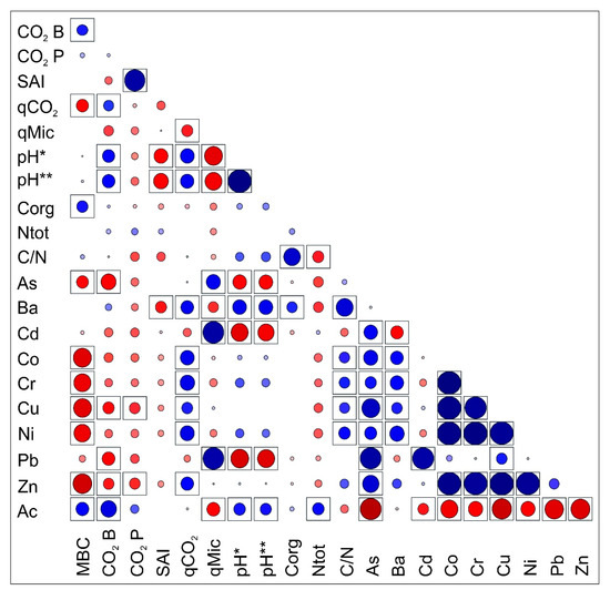 Empirical data were treated statistically using the programme PAST version 4.03 [30]. Pearson correlation coefficients between soil microbial properties and toxic metal concentration values were calculated. Differences at p < 0.05 level were considered significant.