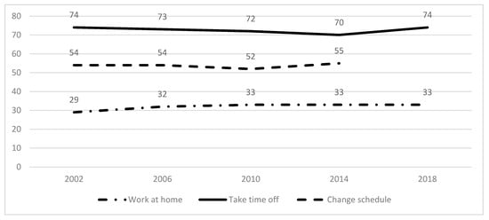 - Chung, H. National-level family policies and the access to schedule control in a European comparative perspective: Crowding out or in, and for whom? J. Comp. Policy Anal. 2019, 21, 25–46. [Google Scholar] [CrossRef]