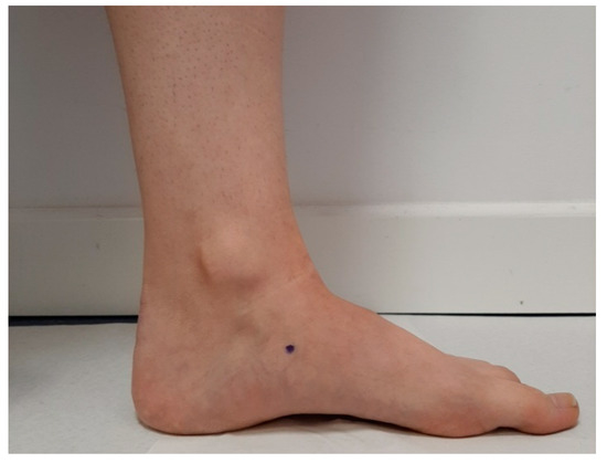 Inclusion criteria for participation included willing and able to walk independently at a comfortable pace for two 10-min walking sessions and have a Navicular Drop test greater than 10 mm [17]. A Navicular Drop test greater than 10 mm was necessary for participation, as this is indicative of excessive pronation [18]. For the measurement of the Navicular Drop test, the technique described by Vinicombe et al. was used (2001) [19] (Figure 1, Figure 2 and Figure 3).