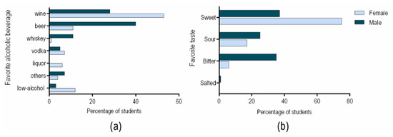 Students’ preferences in terms of alcoholic beverages (a) and tastes (b).