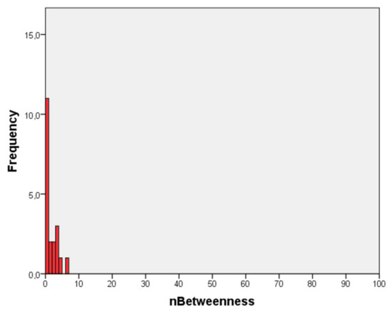 Normalized Betweenness (nBetweenness) centrality distribution.