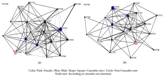 Cannabis use intention (a) consumption network; (b) friendship network.