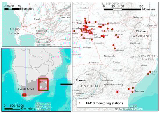 - Khumalo, T.J. 2017 State of Air Report and National Air Quality Indicator; Department of Environmental Affairs: Pretoria, South Africa, 2017. [Google Scholar]