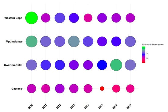 | Mpumalanga | 0.73–0.81 | 14.03–19.35 | 9.63–12.13 | 0.39–0.69 | 22.06–36.21 | 13.5–29.59 | 0.73–0.78 | 13.55–19.21 | 9.85–12.01 | 5–17 * | 2010–2017 |