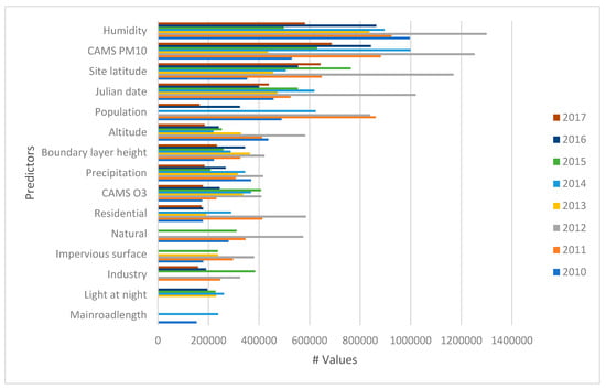 - Stafoggia, M.; Johansson, C.; Glantz, P.; Renzi, M.; Shtein, A.; Hoogh, K.D.; Kloog, I.; Davoli, M.; Michelozzi, P.; Bellander, T. A Random Forest Approach to Estimate Daily Particulate Matter, Nitrogen Dioxide, and Ozone at Fine Spatial Resolution in Sweden. Atmosphere 2020, 11, 239. [Google Scholar] [CrossRef]