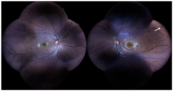 - Salvanos, P.; Moe, M.C.; Utheim, T.P.; Bragadóttir, R.; Kerty, E. Ultra-wide-field fundus imaging in the diagnosis and follow-up of susac syndrome. Retin. Cases Brief Rep. 2018, 12, 234–239. [Google Scholar] [CrossRef] [PubMed]