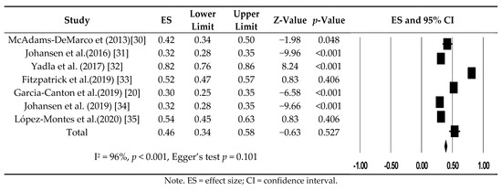 - Higgins, J.P.T.; Thompson, S.G. Quantifying heterogeneity in a meta-analysis. Stat. Med. 2002, 21, 1539–1558. [Google Scholar] [CrossRef]